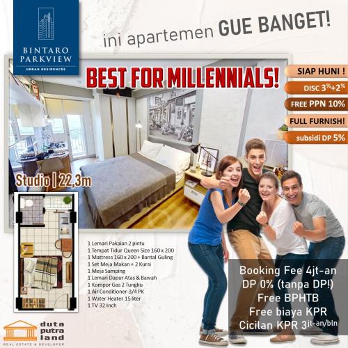 Additional Info: Bintaro Park View Hunian Apartemen Milenial yang berlokasi didaerah elit di Jakarta Selatan.. Dapatkan segera promo spesial bulan ini, dengan hanya membayar Booking Fee 4 Juta-an saja sudah dapat memiliki unit Apartemen Keren ini